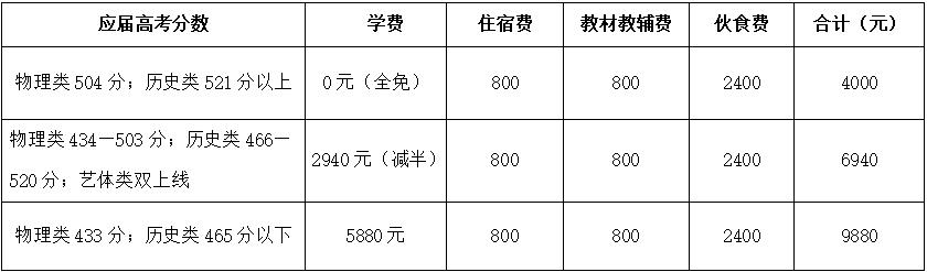 1.文化生:物理類504分以上的學(xué)費(fèi)全免,434至503的學(xué)費(fèi)減半;歷史類521以上學(xué)費(fèi)全免,466分以上學(xué)費(fèi)減半。